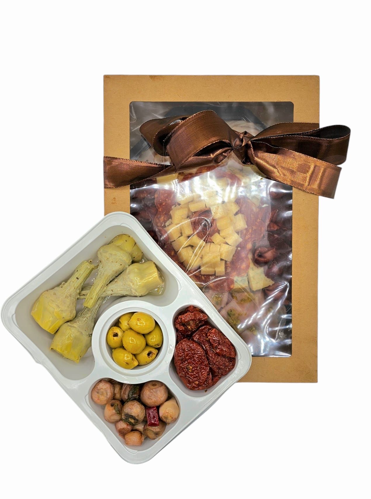 -Bresaola 130g + robiola 130g – tortello con robiola – przekąska z dojrzewającej polędwicy wołowej w kształcie włoskich pierożków, wypełniona kremowym serkiem robiola)